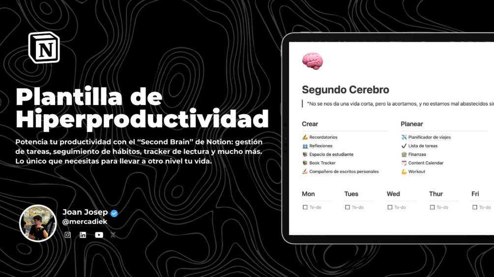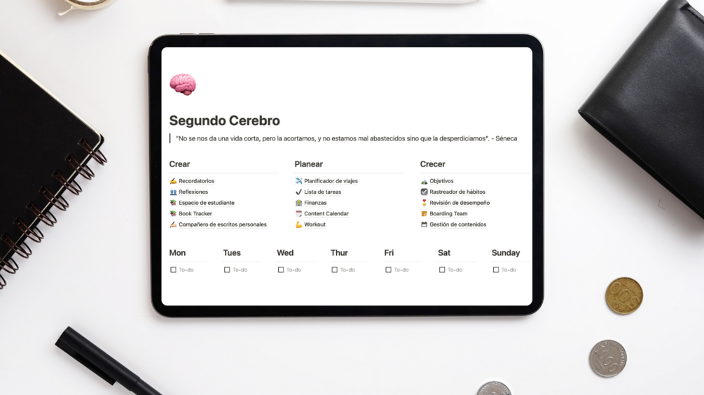 Esta plantilla está diseñada para ser tu compañero definitivo en la búsqueda de una vida altamente efectiva y organizada. Se adapta a cualquier cambio o nueva tarea que necesites incorporar, lo que te permite personalizarla completamente para que se alinee con tu estilo de vida y objetivos, convirtiéndola en tu verdadero "segundo cerebro".