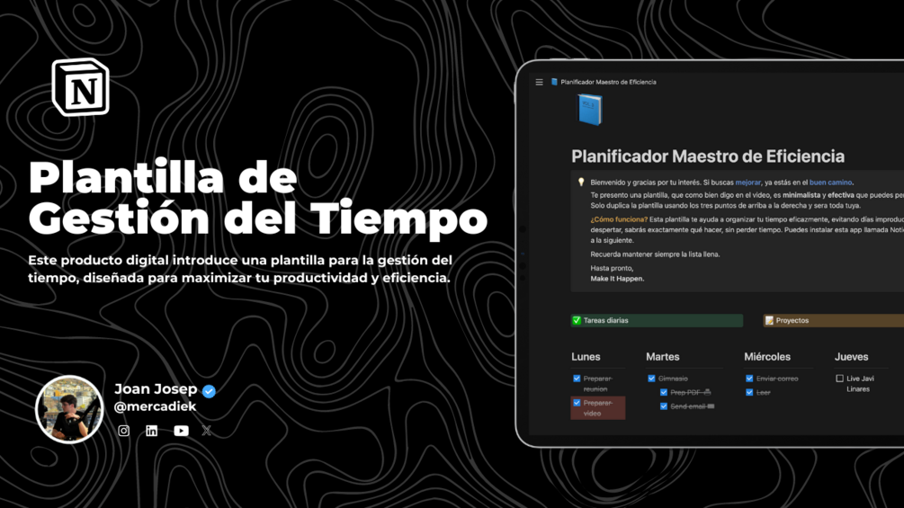 Este producto digital introduce una plantilla semanal para la gestión del tiempo, diseñada para maximizar tu productividad y eficiencia.